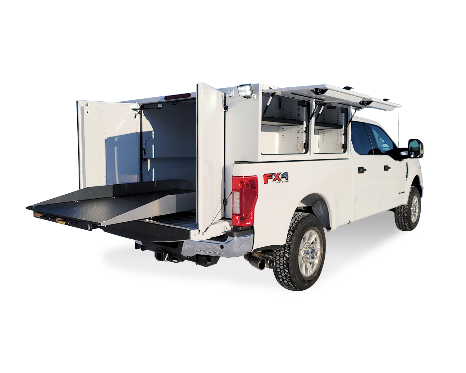 Each slip-in body is a fully self-contained workspace that fits seamlessly into most 6.5-foot and 8-foot pickup beds. Its universal fit means you can move it from one truck to another with ease — keeping your team working when a vehicle is in the shop and protecting your investment when it’s time to refresh your fleet.